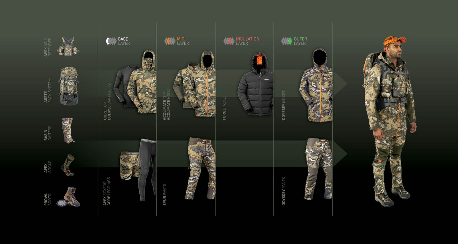 Your outer layer has to be 100% dependable, and a range like our incredible Odyssey V2 is designed as a weight-saving survival tool for every hunt. We recommend keeping it at the bottom of your pack all year round. This fully featured all-rounder jacket gives you an edge, whatever the hunt.