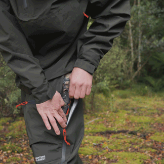 Our Hunt Systems include base, mid, insulation, and outer layers, all designed to work together to give you an edge in the field so you can hunt longer and push harder. The Storm Pants are no exception. The full-length leg zip can be unzipped from the hip down, allowing access to the layer underneath and to other heat vents, so you can dump heat on those uphill slogs.